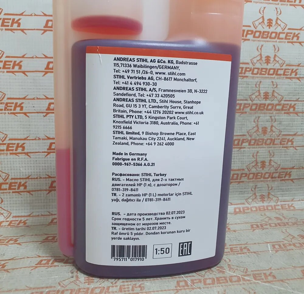 Масло минеральное Stihl HP 2Т, 1 л с дозатором