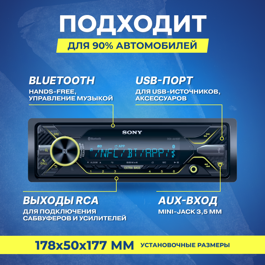 Автомобильный цифровой медиа-ресивер SONY DSX-A416BT интересное: