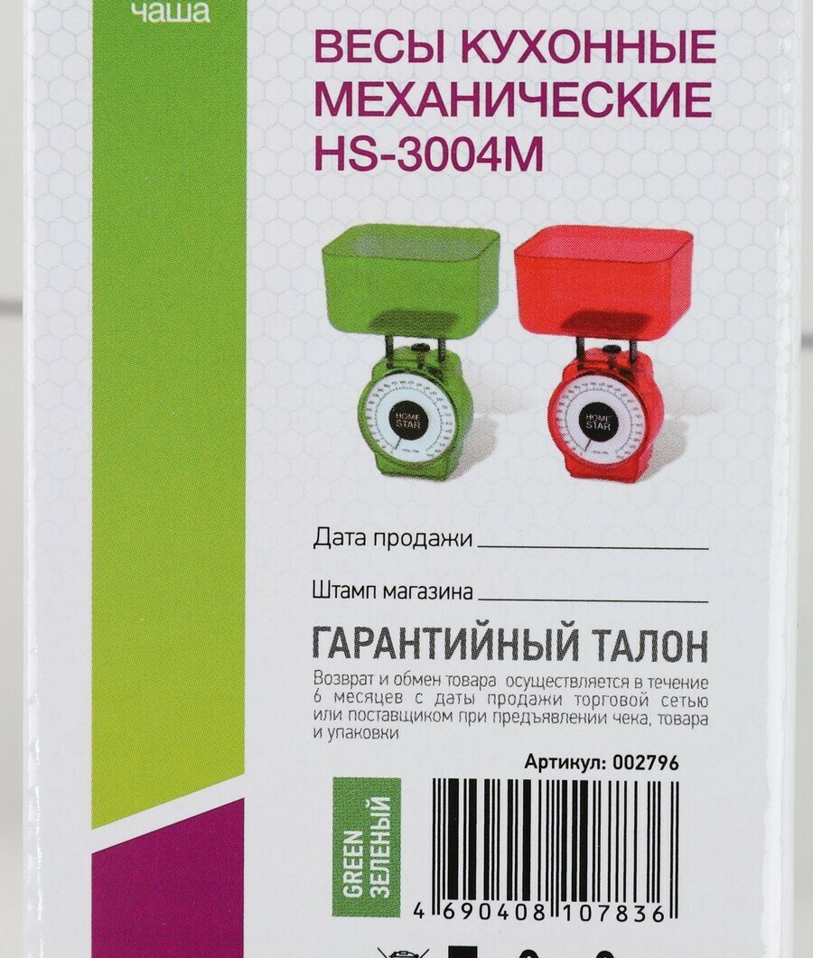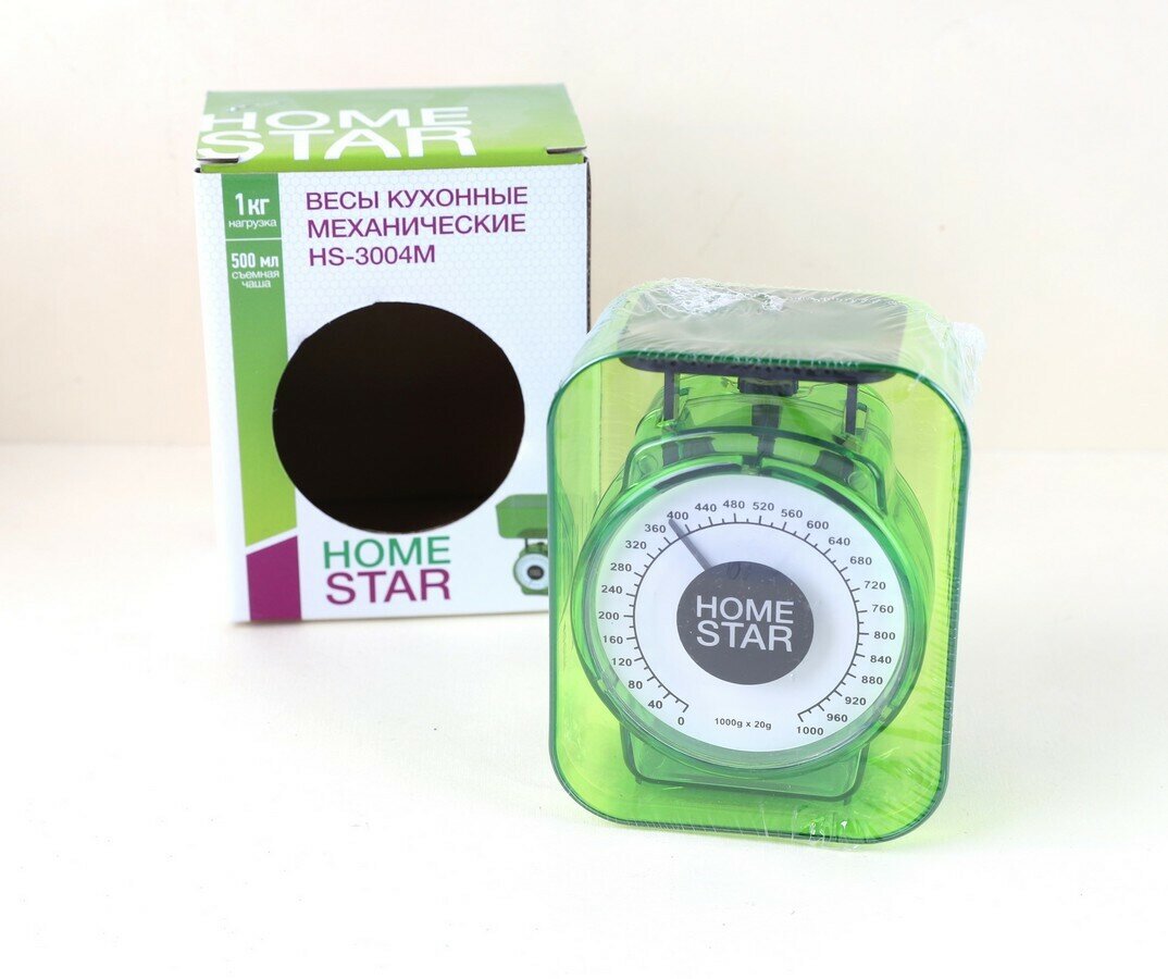 Весы кухонные механические HOMESTAR HS-3004М, 1 кг, цвет зеленый