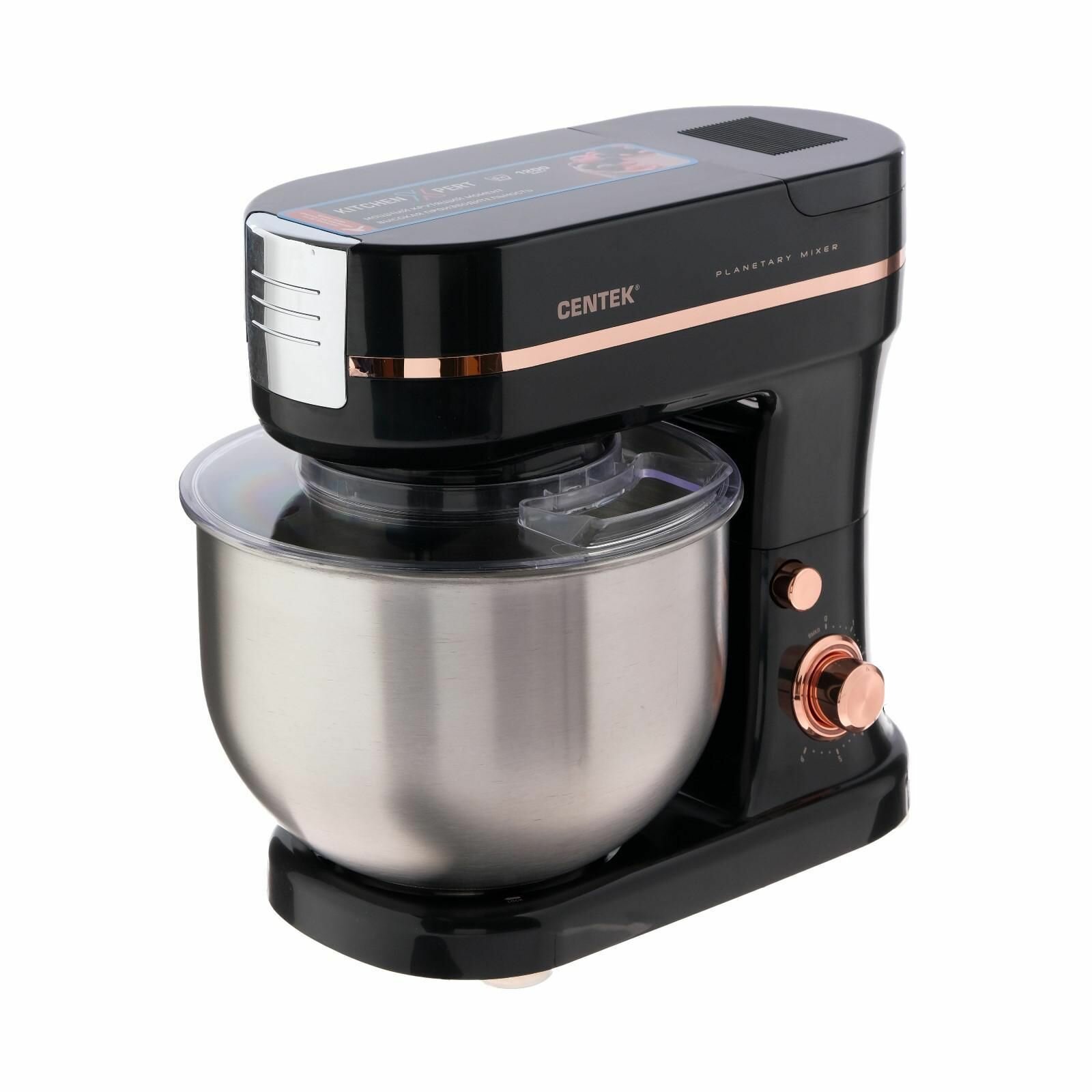 Миксер Centek CT-1130, планетарный, 1200 Вт, 5 л, 6 скоростей, 3 насадки, черный