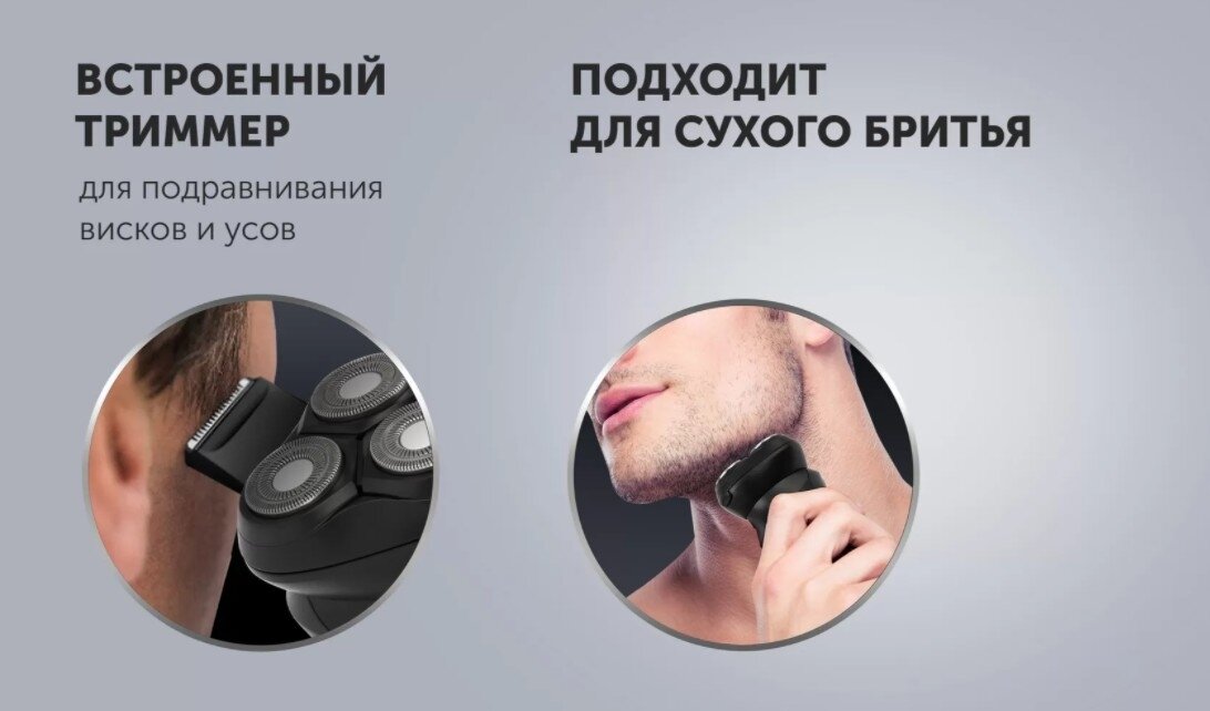 | Отзыв: | Электрическая бритва в обновлённом дизайне, три плавающие ротарные головки справляются с моей твёрдой щетинной отлично, до этого всегда пользовался станком, так гладко не выбривал. Можно бриться на сухую, раздражения не вызывает, а вообще я привык на влажную кожу. |