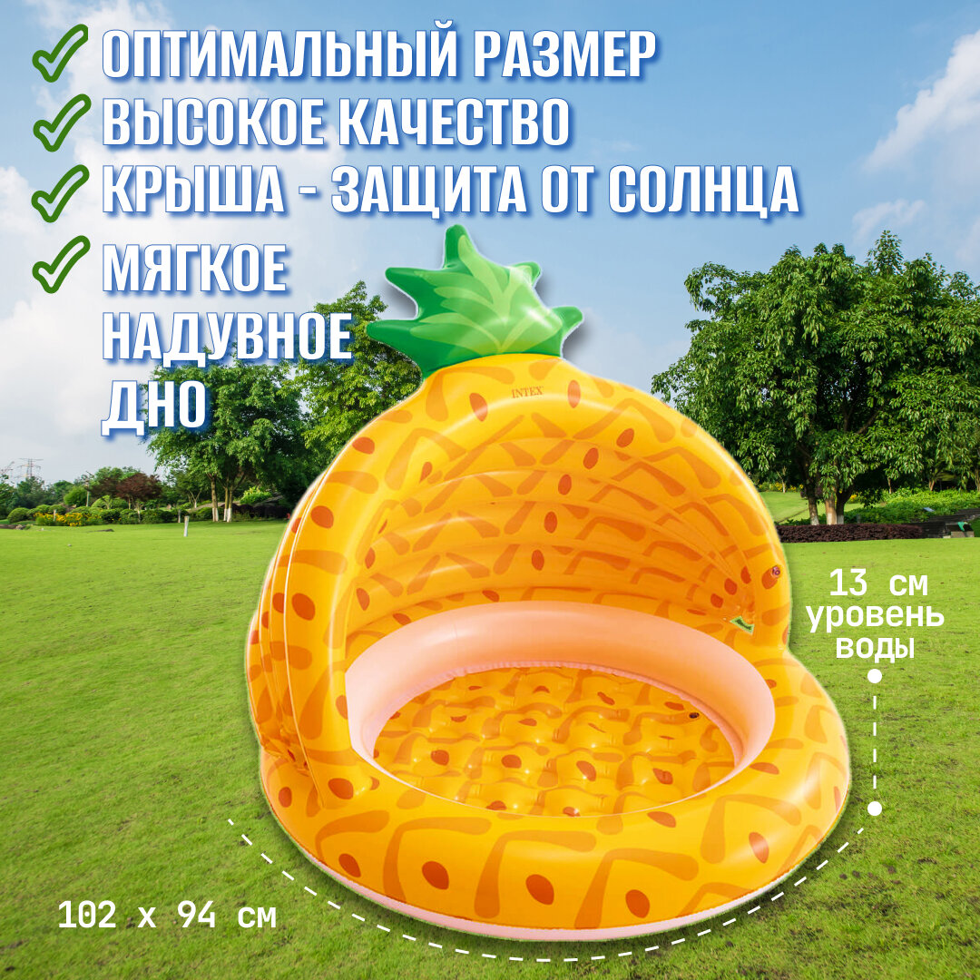 Надувной бассейн INTEX Ананас с надувным дном и навесом , 102х94 см, от 1 до 3 лет, 58414