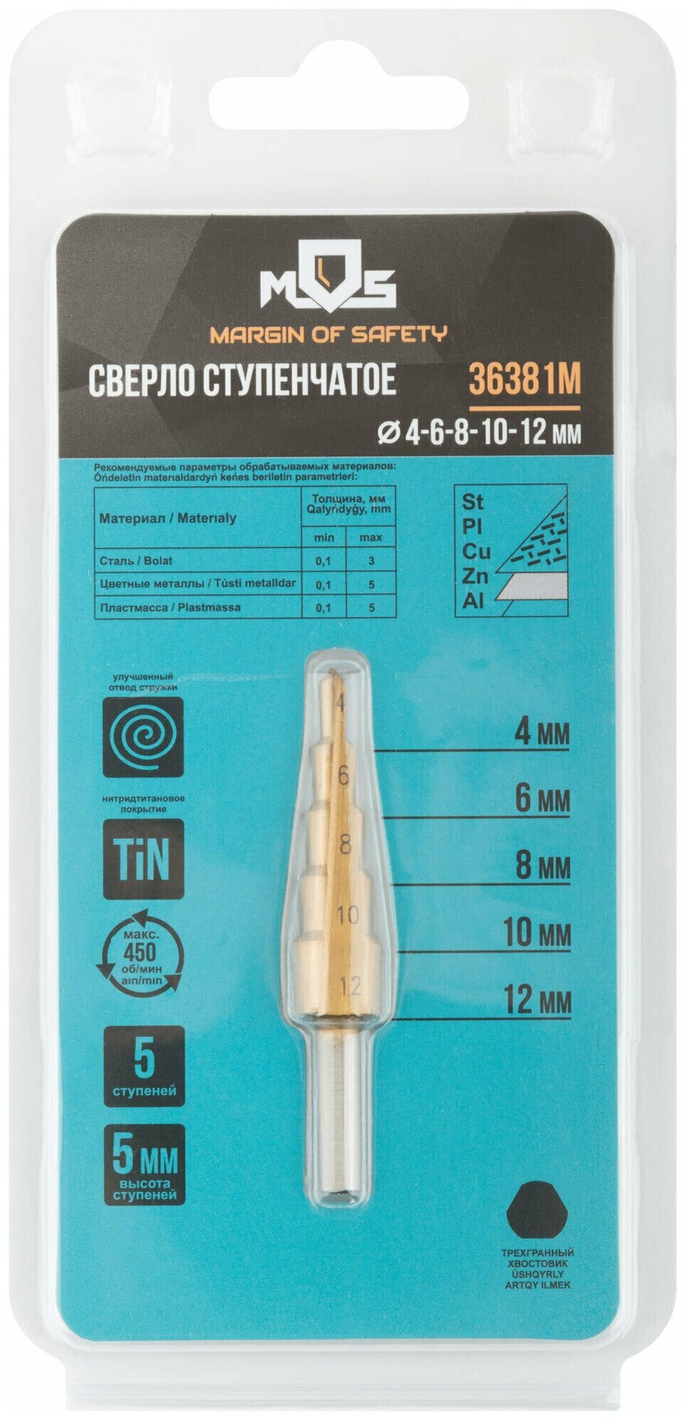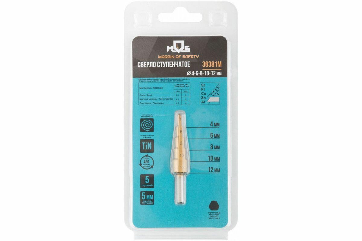 Сверло ступенчатое конусное по металлу HSS TiN покрытие MOS 36382М 4-6-8-10-12-14-16-18-20 мм