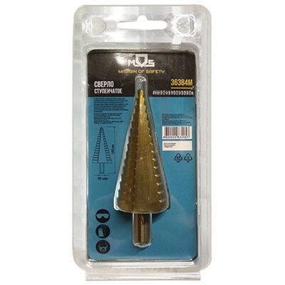 Сверло ступенчатое конусное по металлу HSS TiN покрытие MOS 36382М 4-6-8-10-12-14-16-18-20 мм