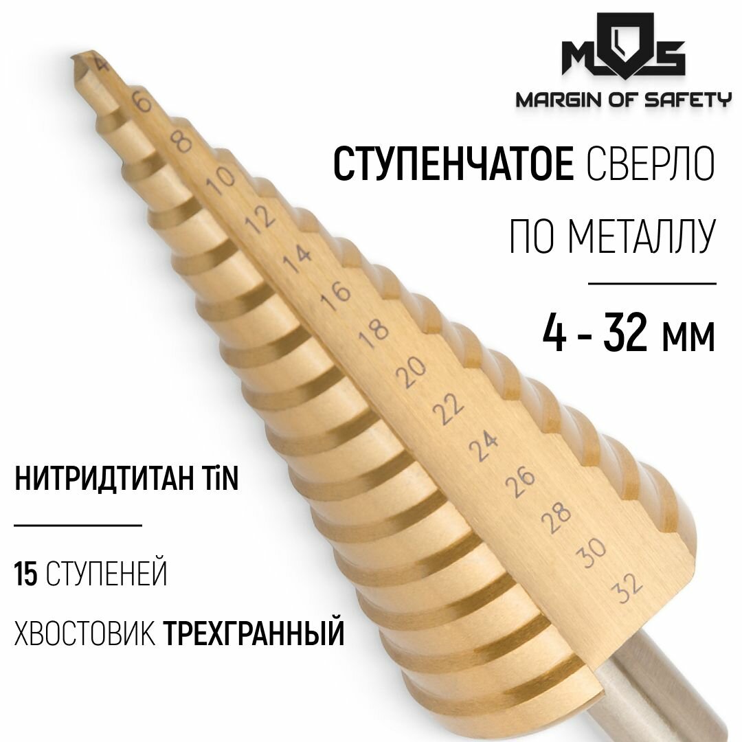 Сверло по металлу ступенчатое 4,0-32,0мм шаг 2мм HSS-TIN