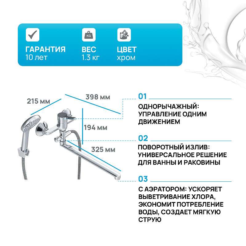 | Отзыв: | Штанга выдвижная, и душ можно выставить на любую удобную высоту, независимо от расстояния от ванны до потолка. Смеситель полка, без опаски ставлю на него шампунь и кусочек мыла. Общее впечатление материалы и сборка производят положительные, каждый стык аккуратно обработан. |