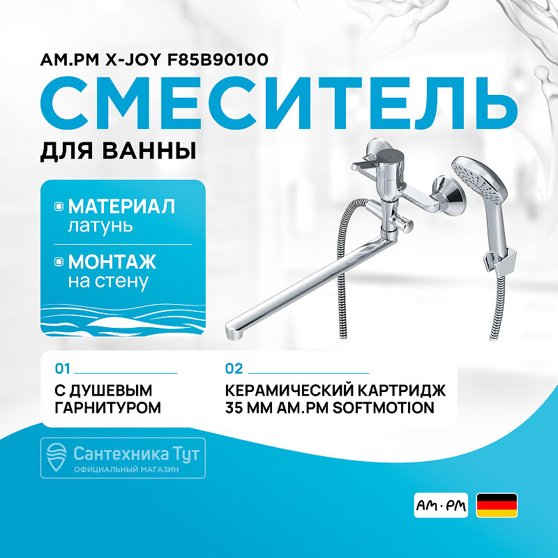 СохранитьСмеситель для ванны с душем AM.PM X-Joy S, с длинным поворотным изливом 350 мм, латунь, хром интересное: