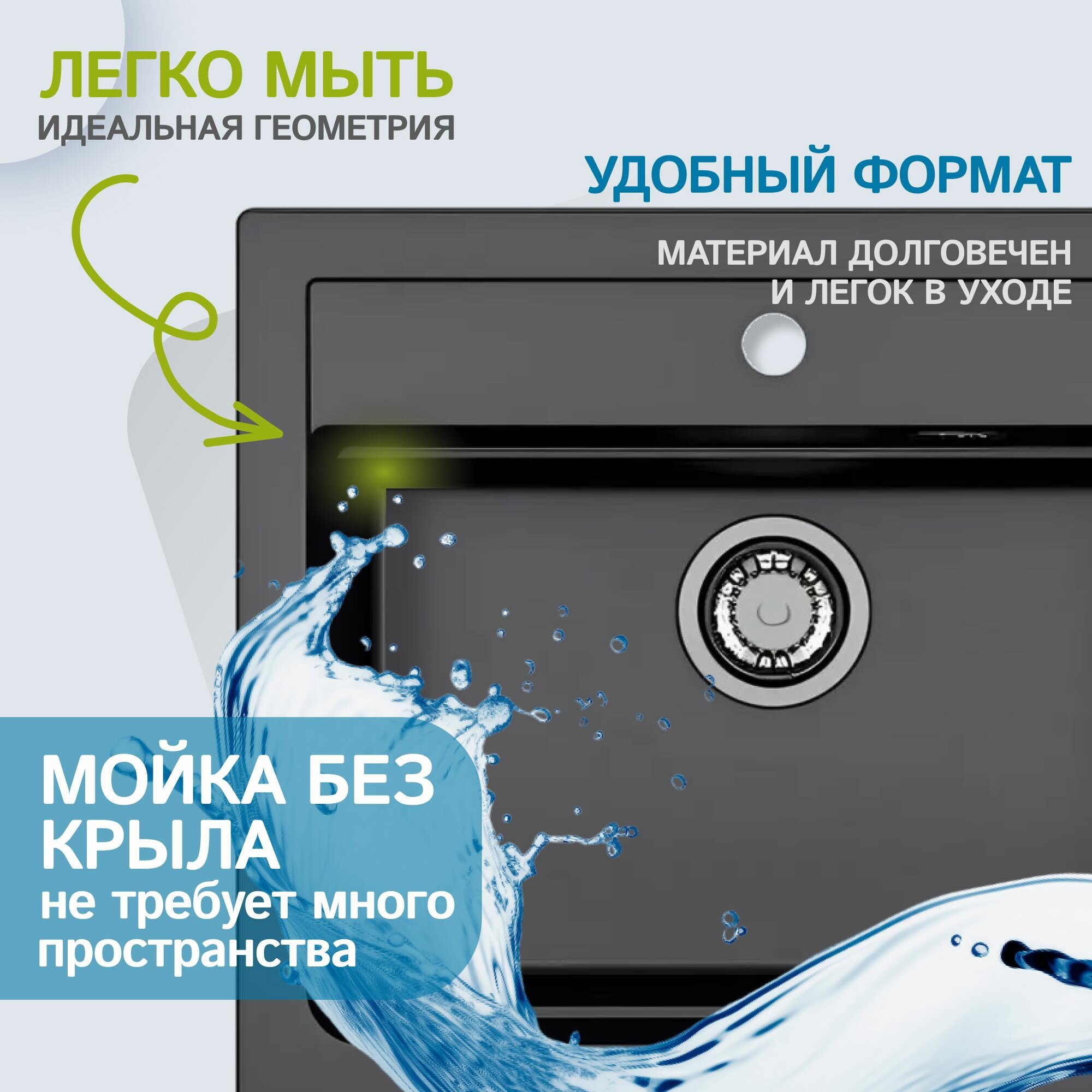 Мойка для кухни ALVEUS GRANITAL ATROX 30 CARBON - G91 590 X 500 1X в комплекте с сифоном 1148149 BLACK EDITION