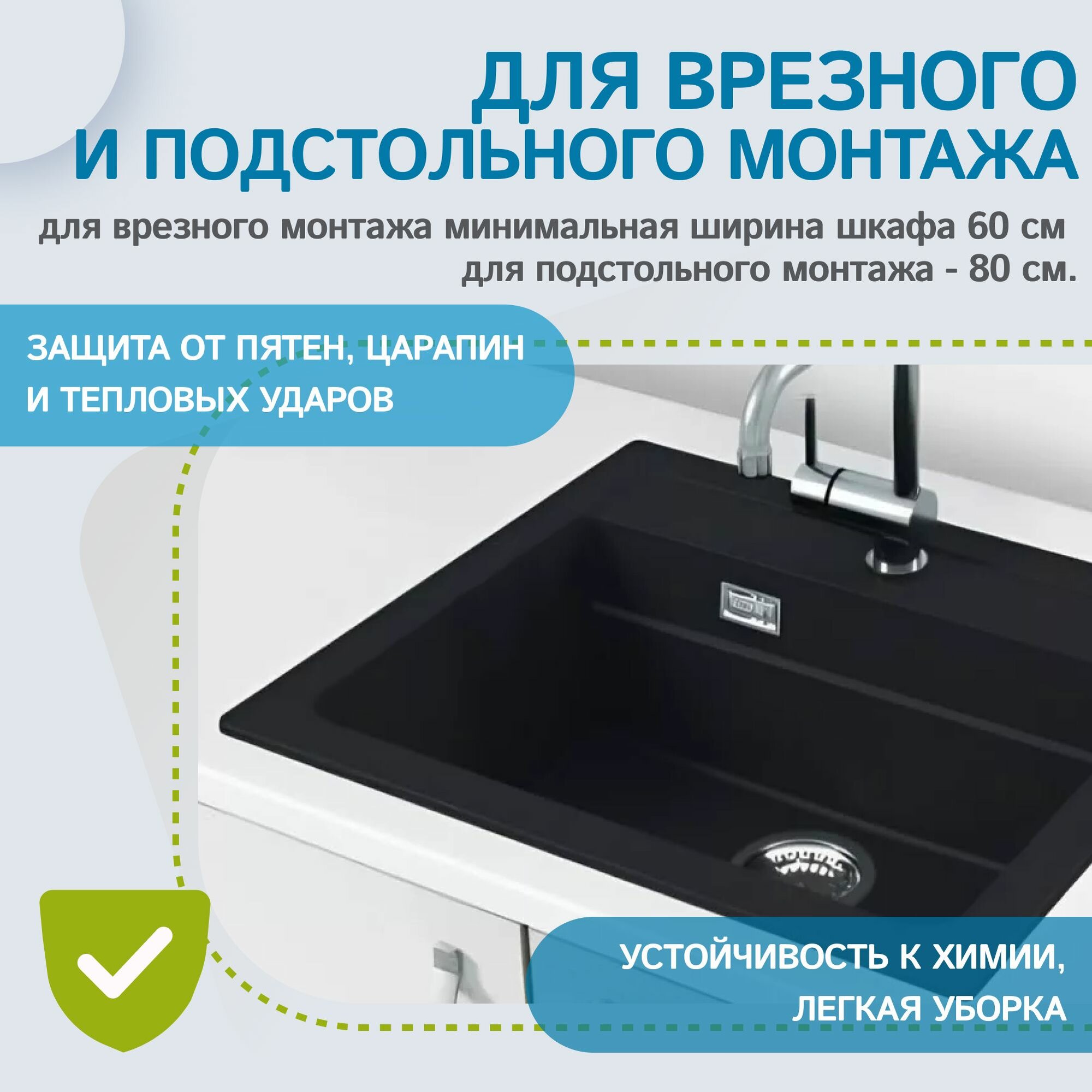 Раковина для кухни врезная каменная Alveus Granital Atrox 30 CARBON - G91 59 X 50 см / кухонная мойка накладная из искусственного камня, гранит, черный