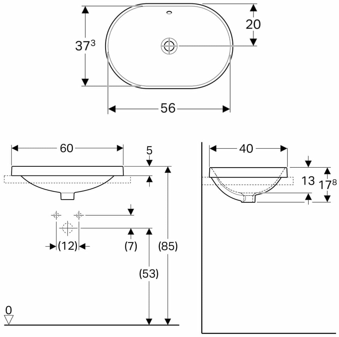 Geberit VariForm Раковина встраиваемая в столешницу эллиптической формы, 60х40 см, без отв. под смеситель, с отв. перелива