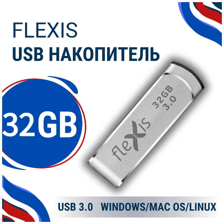 Флешка 32Gb Flexis RS-105 USB 3.0 серебристый интересное:
