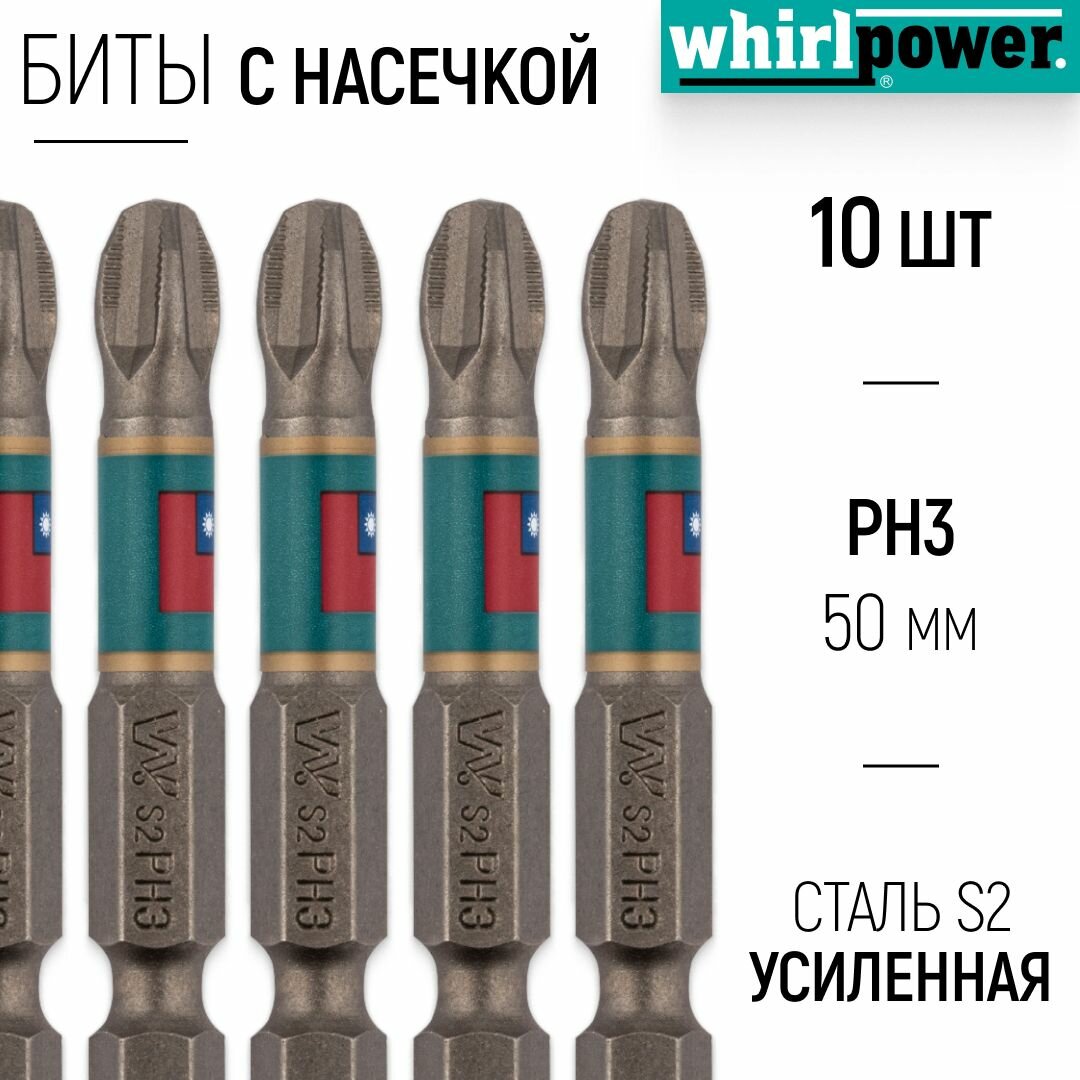Whirlpower Биты 10 шт. WP, сталь S2, с насечкой, Профи, PН 3x50 мм 57578