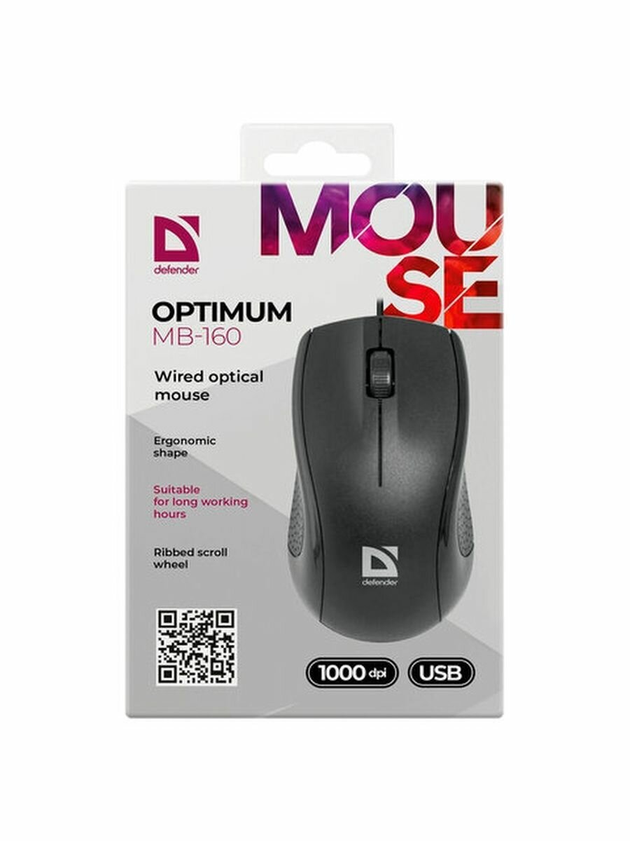 DEFENDER Мышь проводная defender optimum mb-160, usb, 2 кнопки + 1 колесо-кнопка, оптическая, черная, 52160