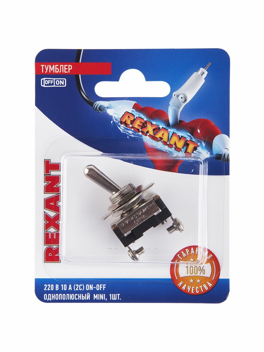 Тумблер 220V 10А (2c) ON-OFF однополюсный Mini (ASW-23) REXANT (в упак. 1шт.) 1 шт арт. 06-0330-A