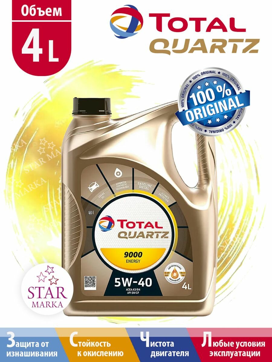 Моторное масло Total QUARTZ 9000 5W-40 синтетическое 4 л, 213674