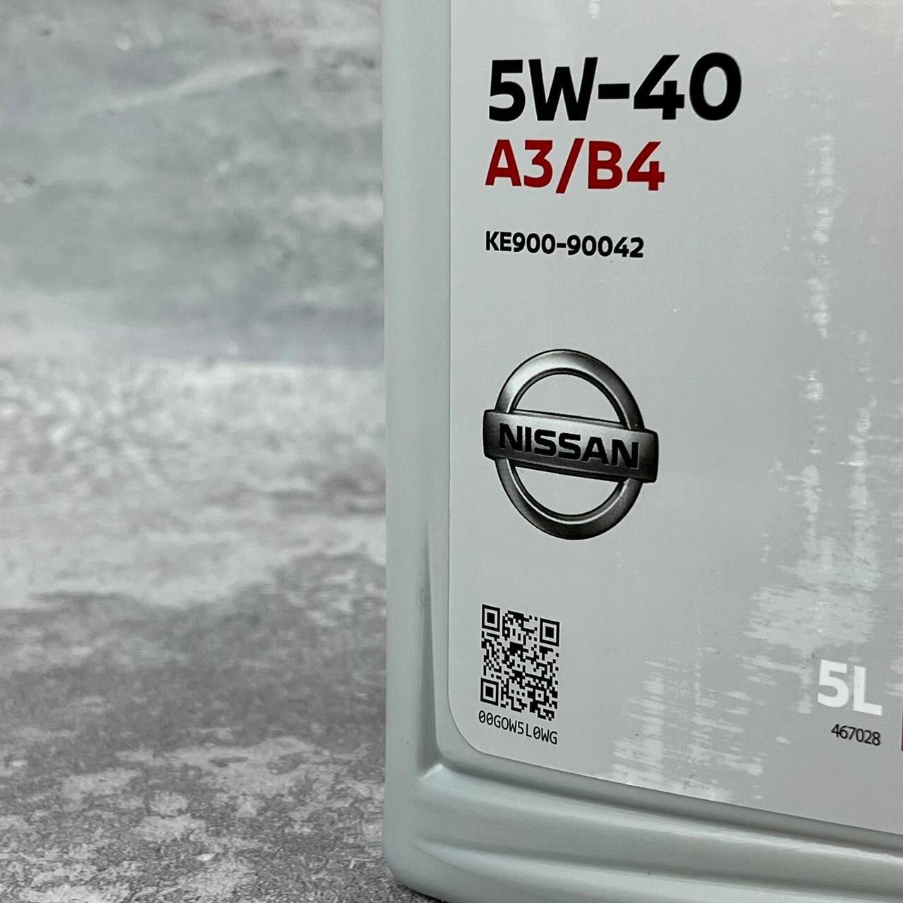 Масло моторное Nissan Motor Oil 5w40 синтетическое, API SN/CF, ACEA A3/B4, универсальное, 5л, арт. KE900-90042
