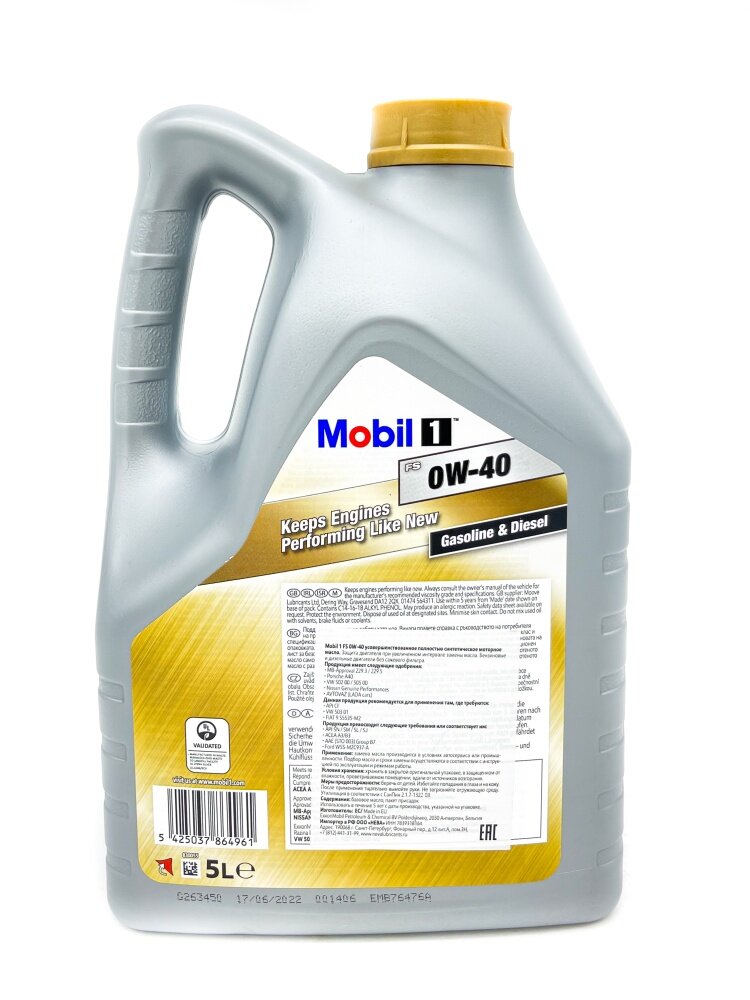 Моторное масло MOBIL 1 FS 0W-40 синтетическое, 0W-40, 4+1 л
