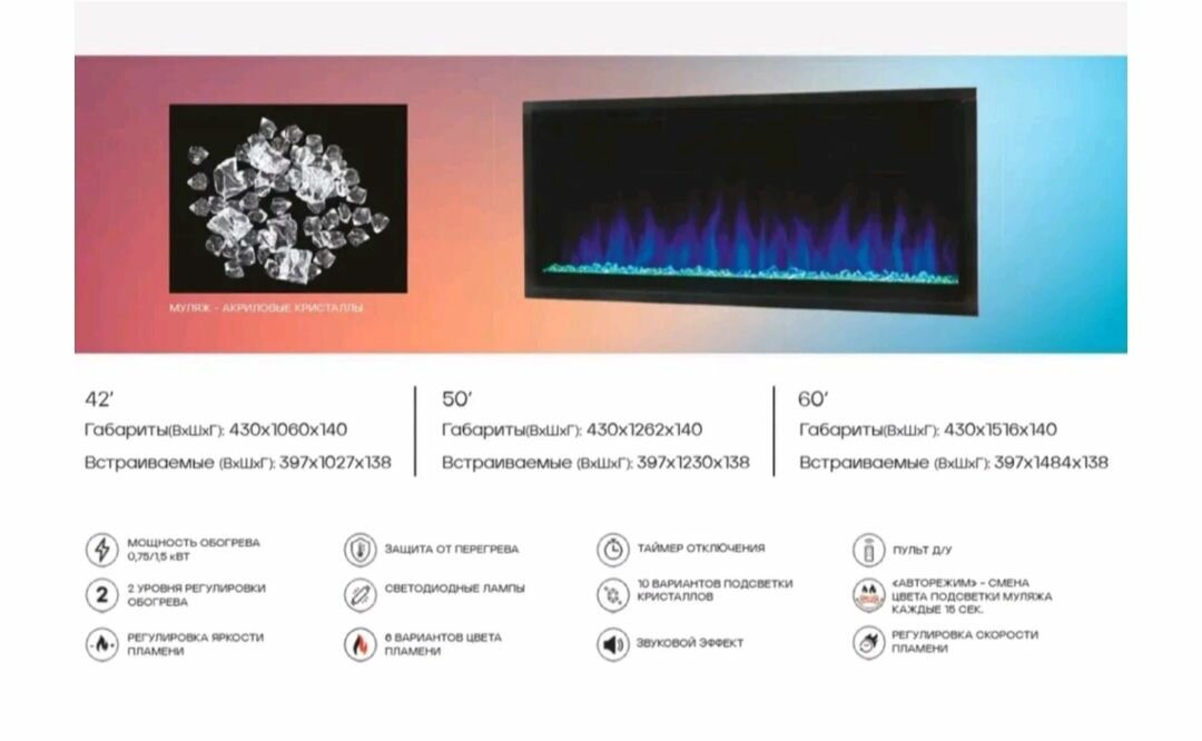 Ниже Вы можете прочитать отзывы на Линейный электроочаг Saphir 60. 10 вариантов подсветки кристаллов., ознакомится с подробными характеристиками, посмотреть интересные обзоры и фотографии на Линейный электроочаг Saphir 60. 10 вариантов подсветки кристаллов..