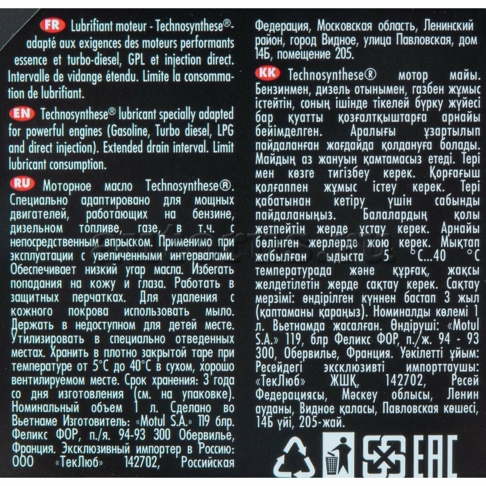 масло моторное motul 6100 syn-nergy 5w-40 синтетическое 4 л 111862