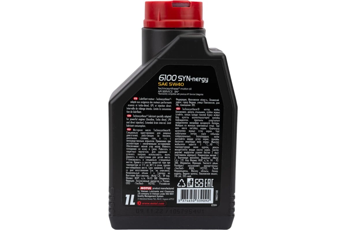 Купить Моторное масло MOTUL 6100 SYN-NERGY, 5W-40, 1л