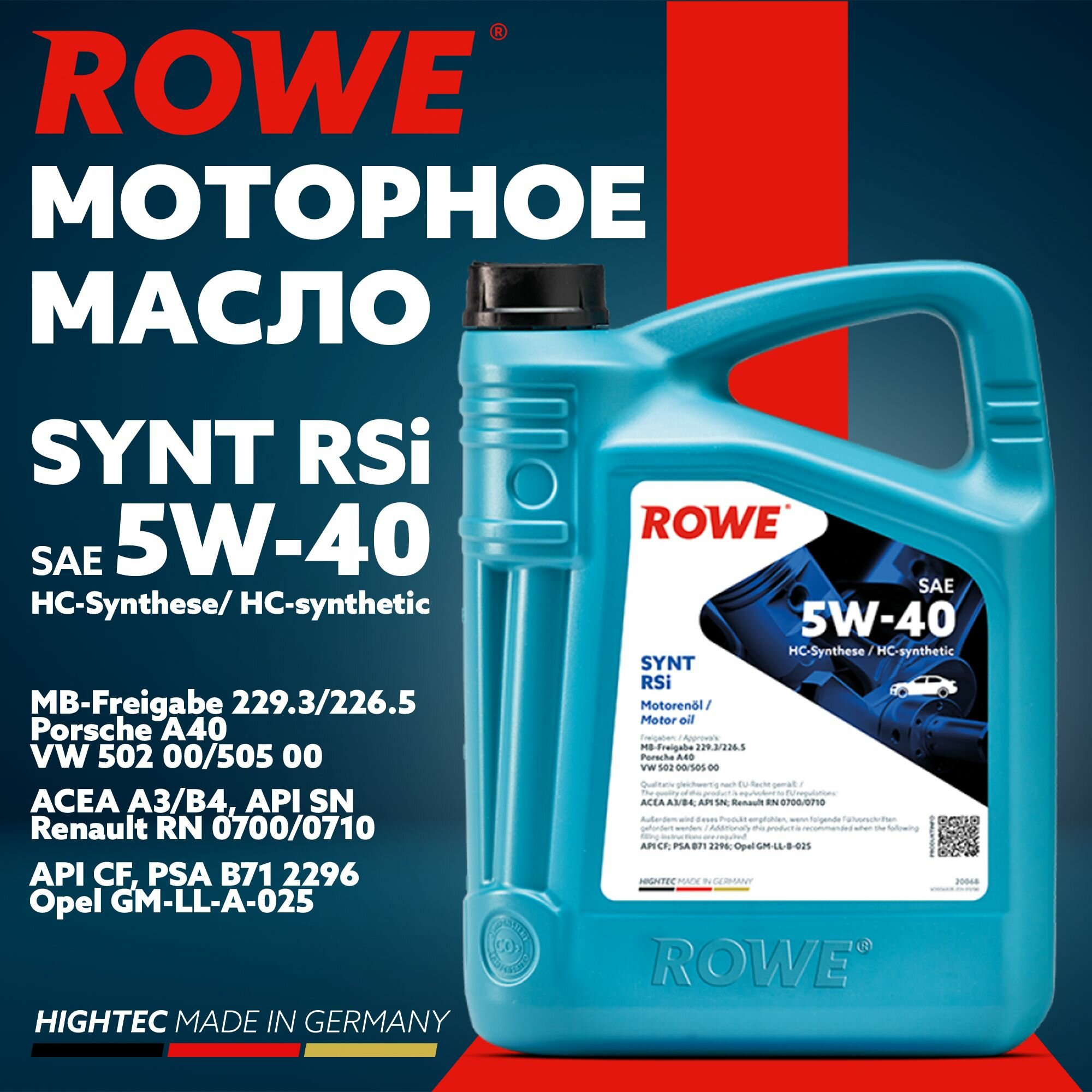 Моторное масло ROWE HIGHTEC SYNT RSi SAE 5W-40 4л