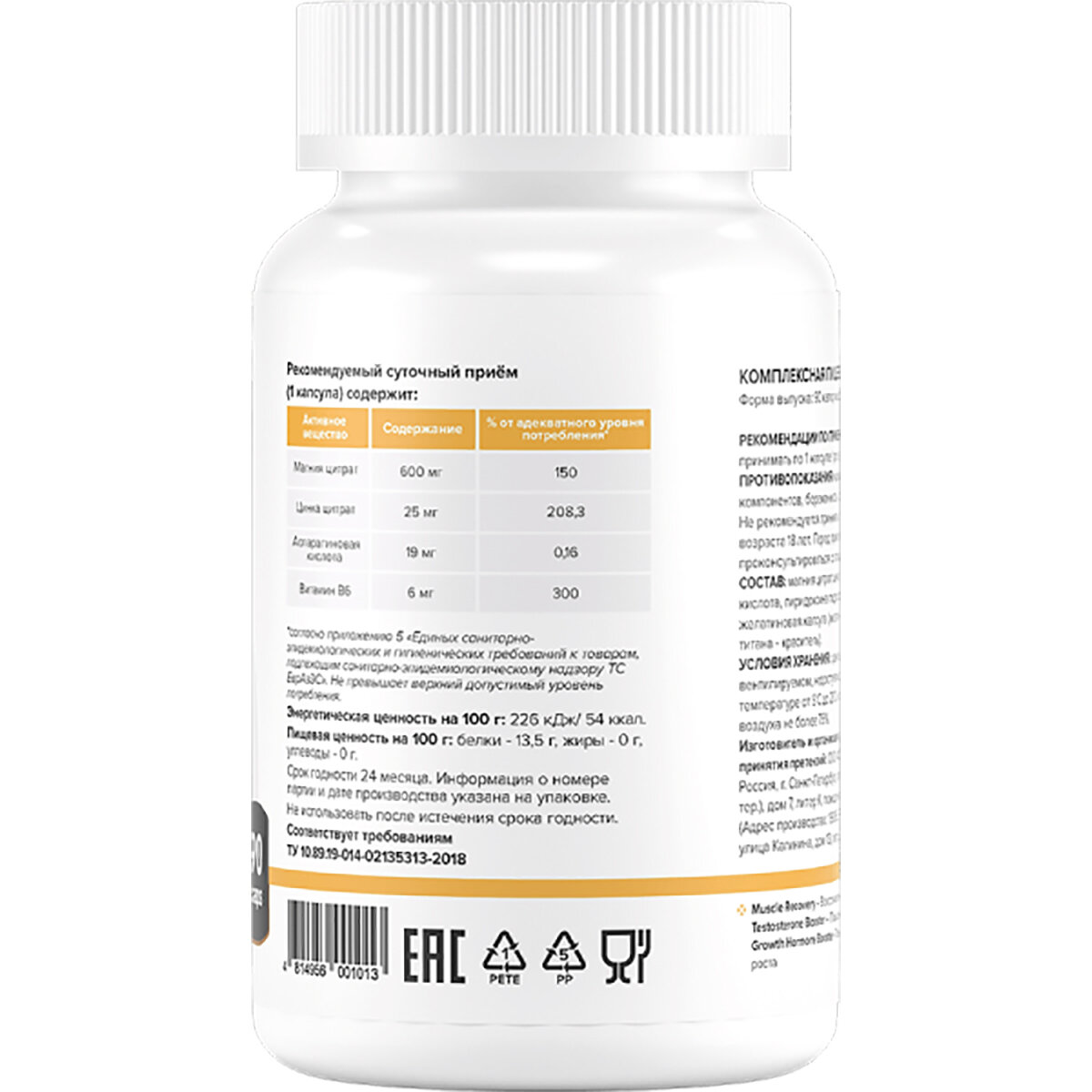 БАДы ЗМА комплекс ZMA, B6 цинк магний бустер тестостерона, 90 капсул