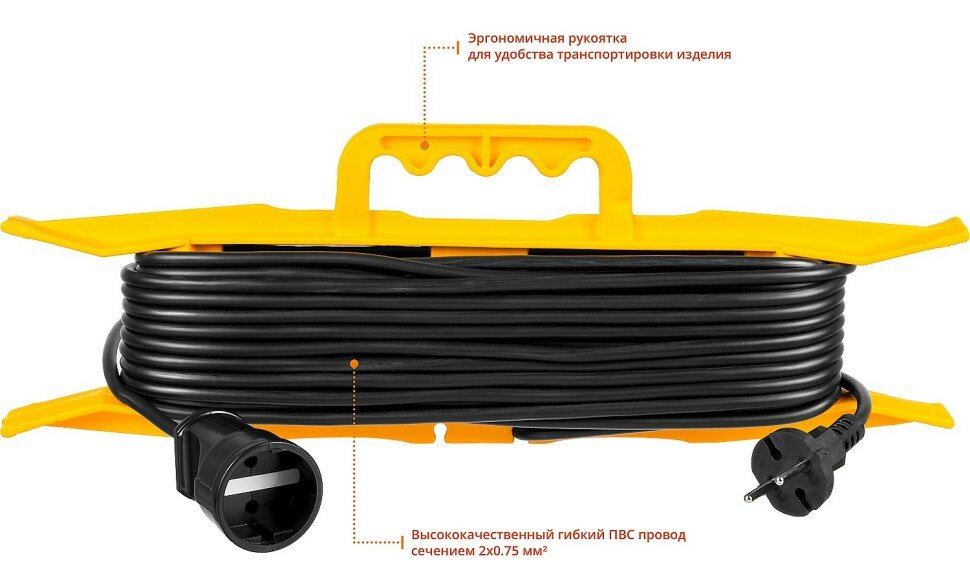 stayer силовой удлинитель-шнур пвс 2x0.75 20м, 2200вт на рамке, mf 207 55018-20_z01 удлинитель