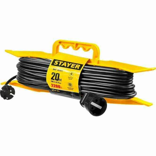 Купить STAYER Удлинитель на рамке "MF 207", 20 м, 2200 Вт, 1 гнездо, ПВС 2х0,75 мм2, STAYER ( 55018-20_z01 )