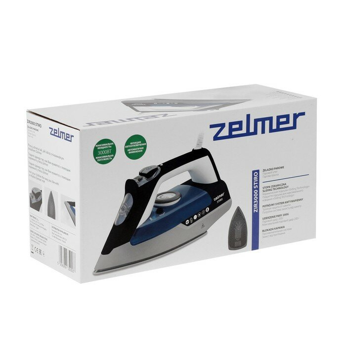Купить Утюг паровой для глажки одежды ZIR3000 STIRO ZELMER, мощность 3000 Вт, паровой удар, керамическая подошва