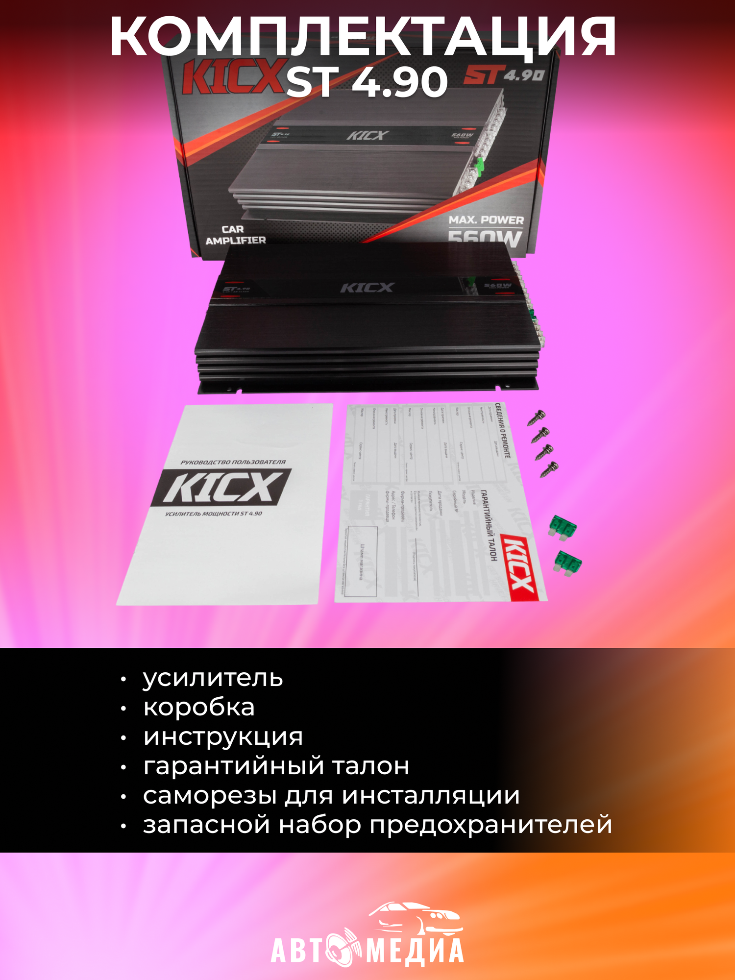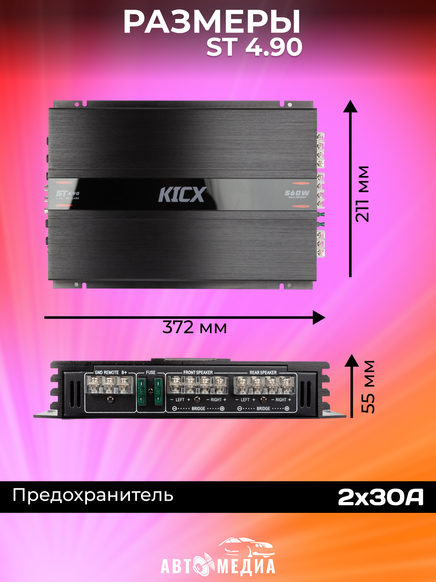 Автомобильный усилитель мощности ST 4.90 Kicx 4-х канальный усилитель