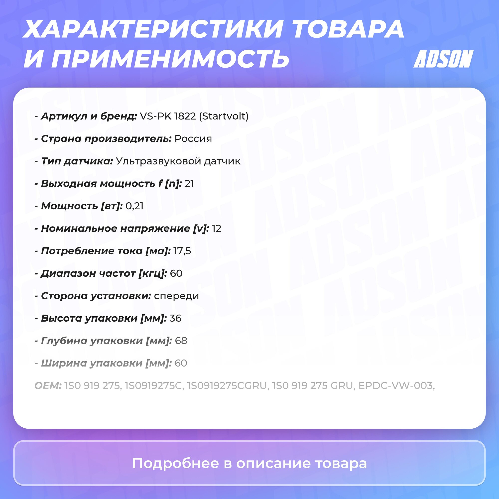Датчик Парковки Старт Вольт Vspk1822 STARTVOLT арт. VS-PK 1822