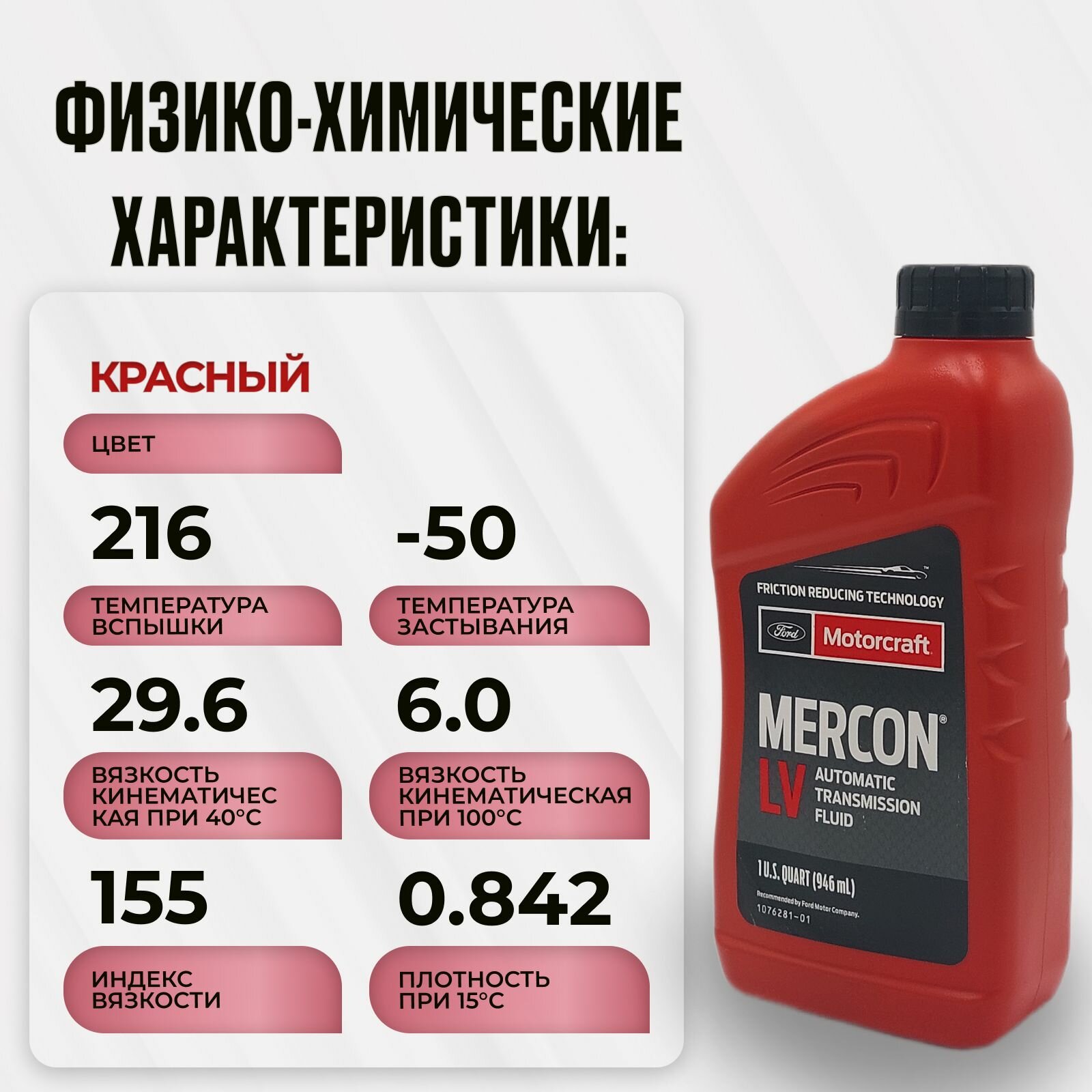 Масло Трансмиссионное Motorcraft Mercon Atf Lv, 0.946 Л MOTORCRAFT арт. XT10QLVC