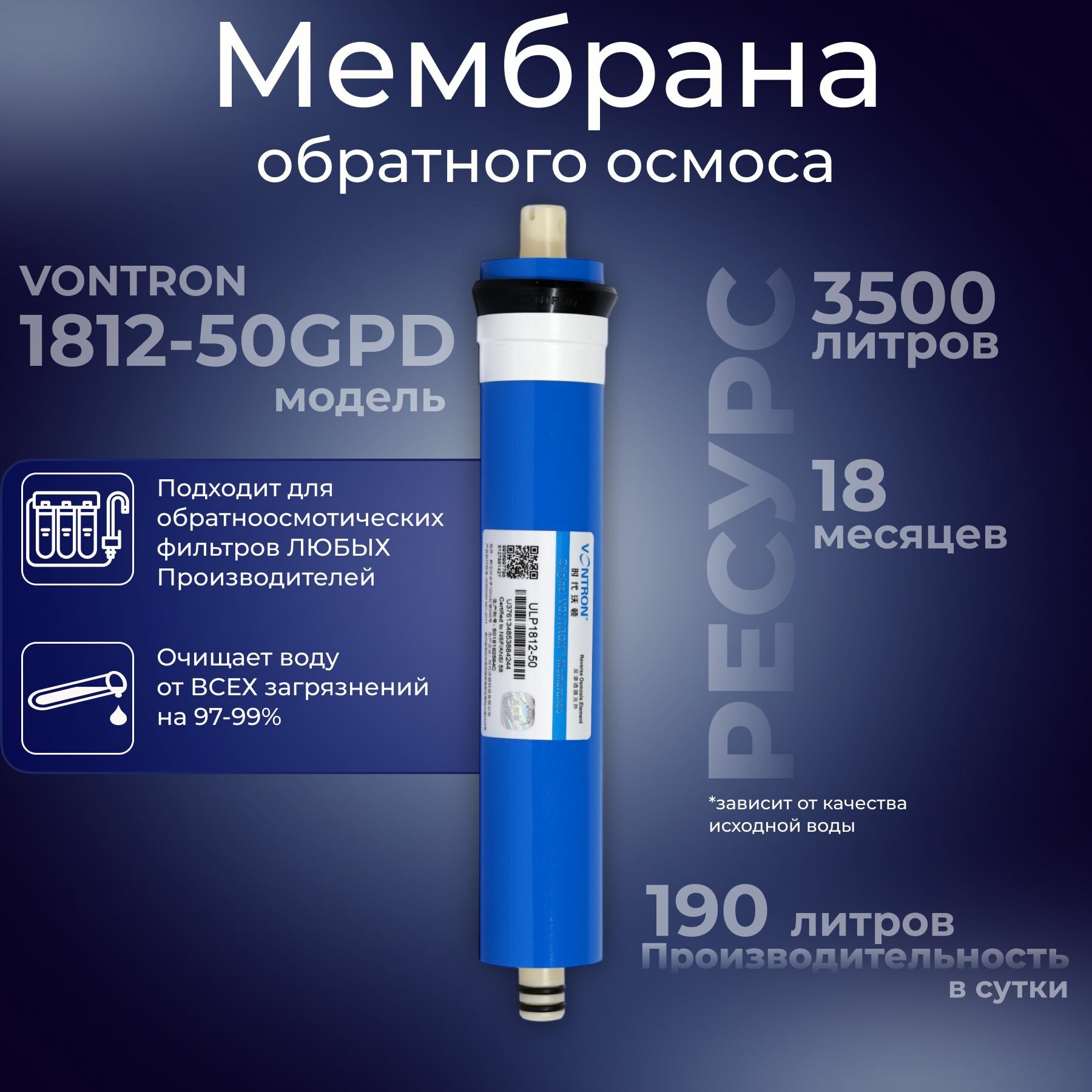 Обратноосмотическая мембрана VONTRON 1812-50 GPD аква про 748