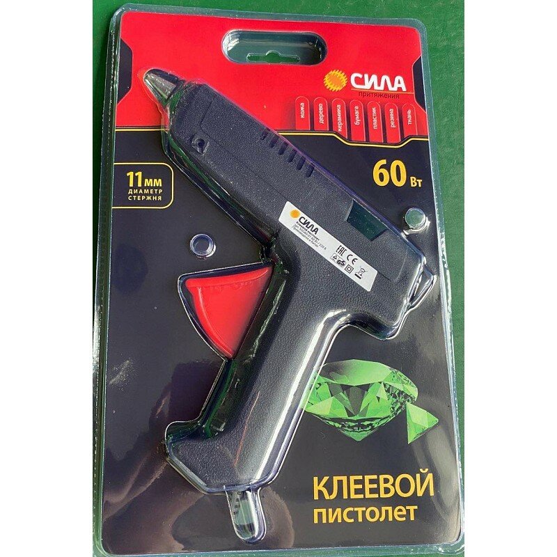 Клеевой термопистолет 60Bт под стержень 11мм SGG60-01 сила (в комл. 11мм х 7cм 2 шт.)