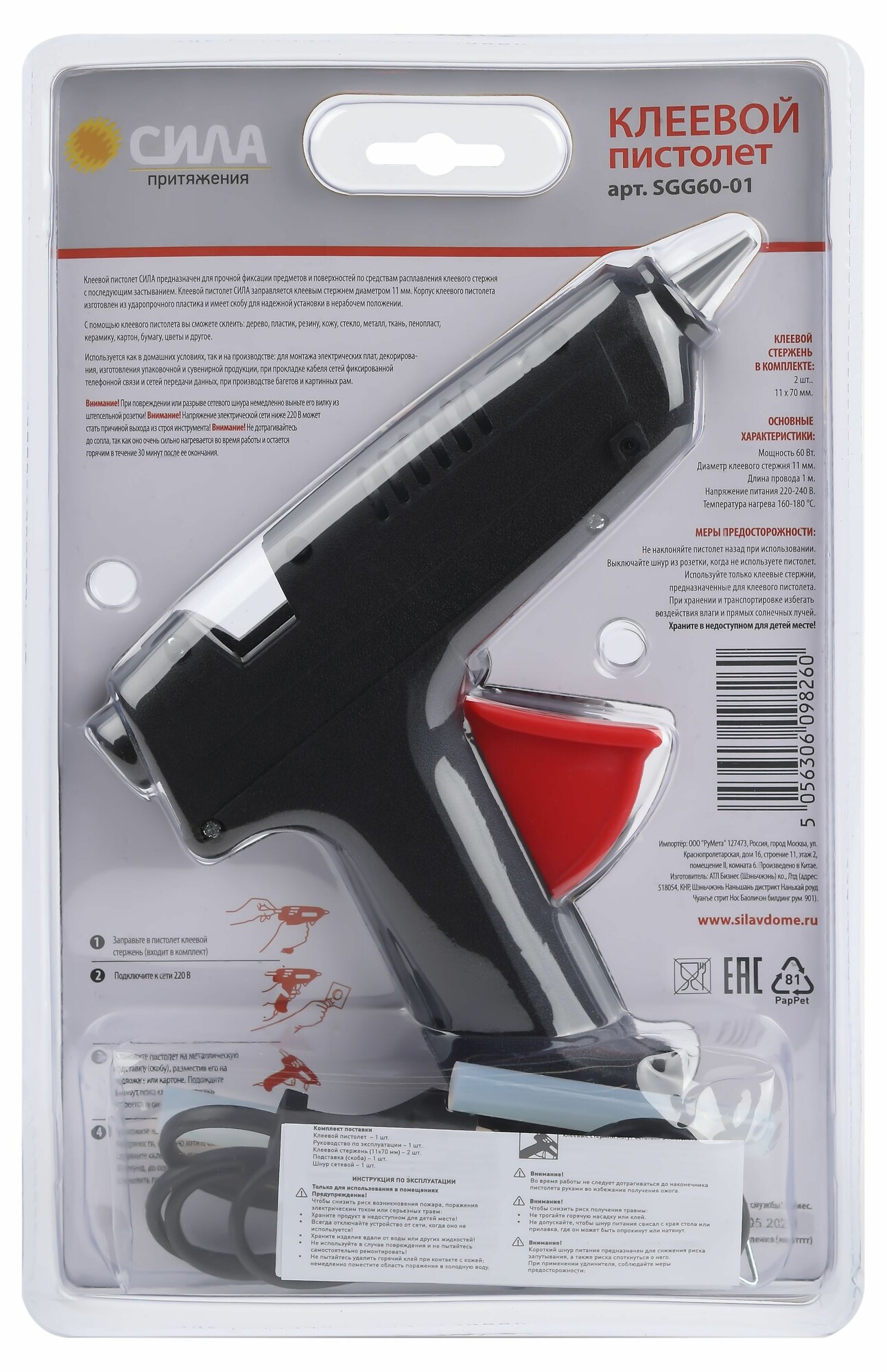 Клеевой пистолет для рукоделия SGG60-01 сила 11 мм, 60 Вт пистолет + стержни 2 шт. чёрный интересное: