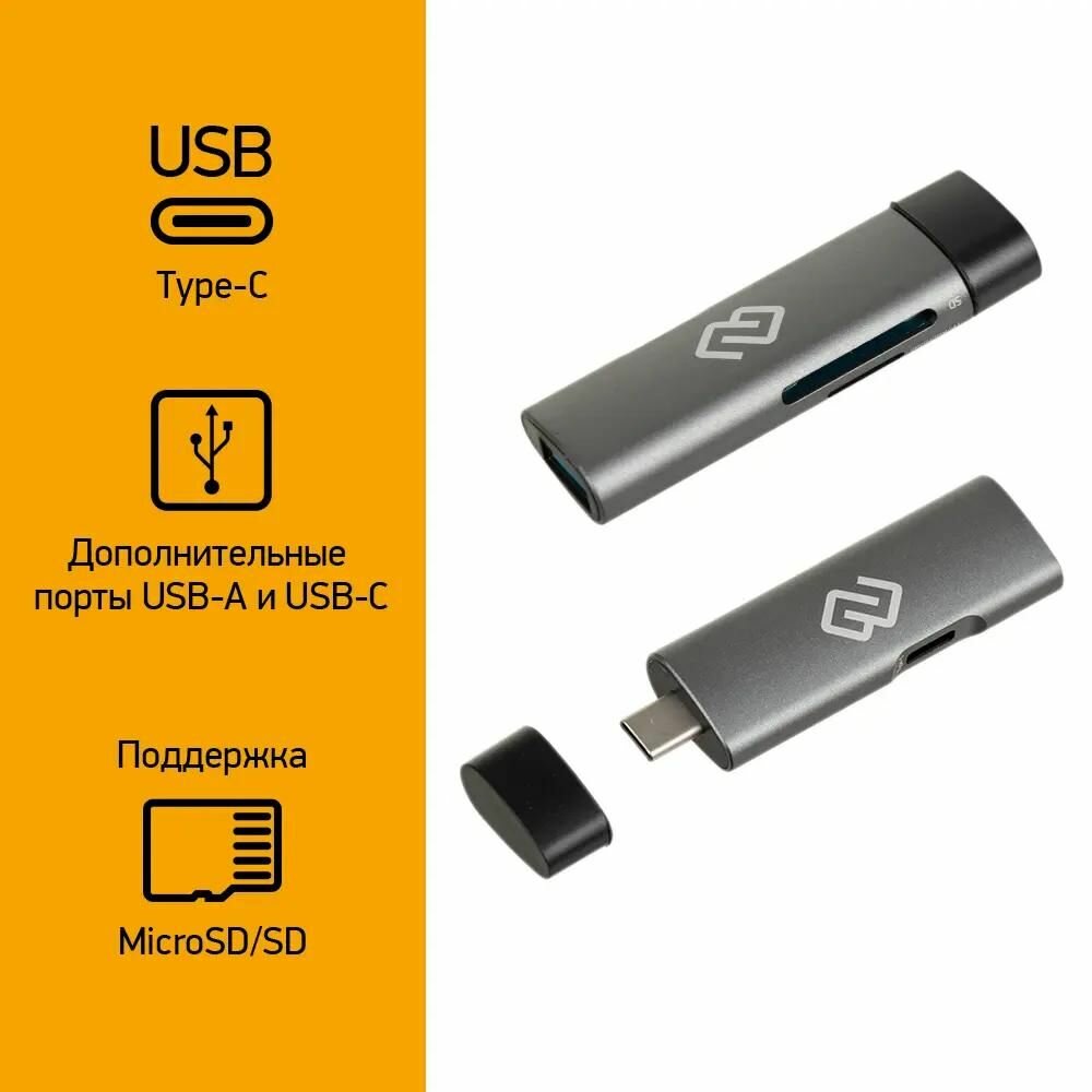 Устройство чтения карт памяти Type C Digma Cr-сu2522-g серый .
