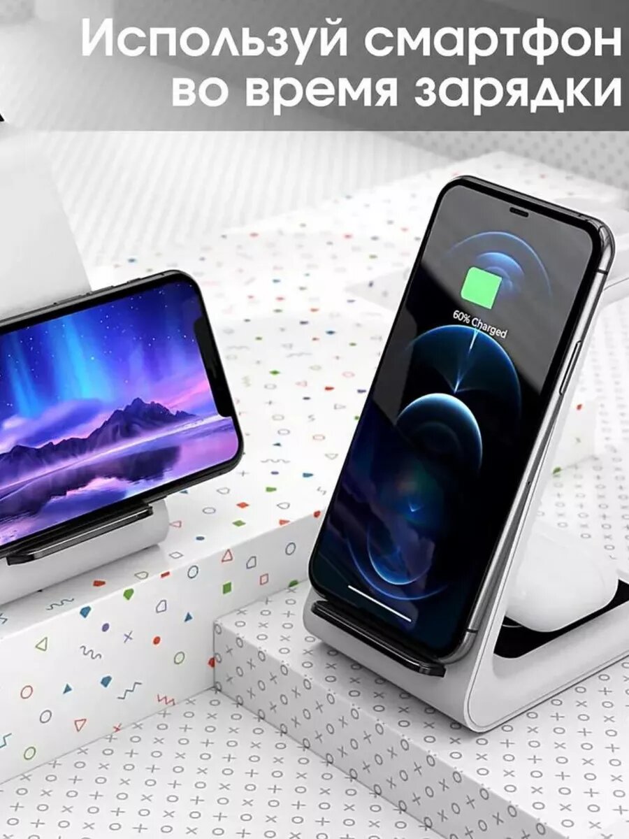 Купить Беспроводная зарядка QI Fast Charge 17.5Вт,матовое Soft Touch покрытие,быстрый заряд и подставка под телефон в любом положении
