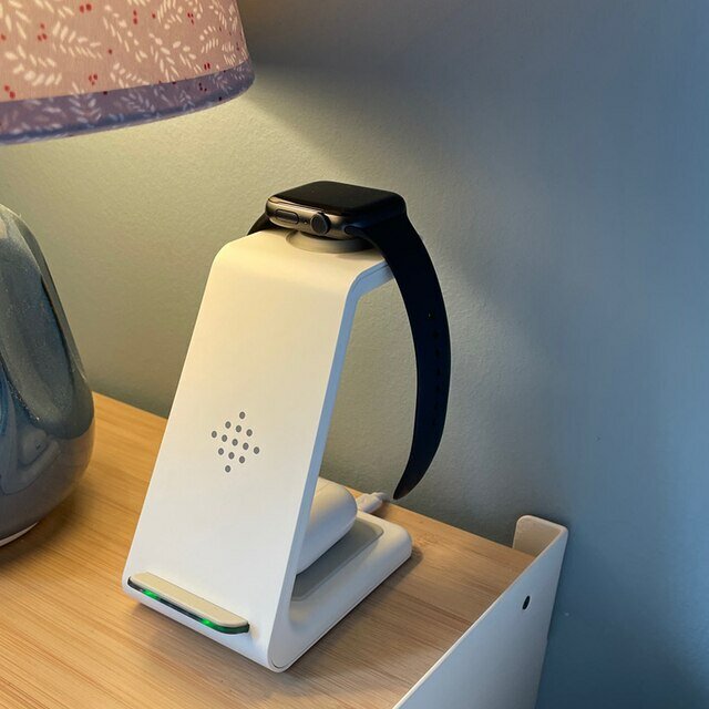 | Плюсы: | Стильный вид, заряжает айфон с часами достаточно шустро |