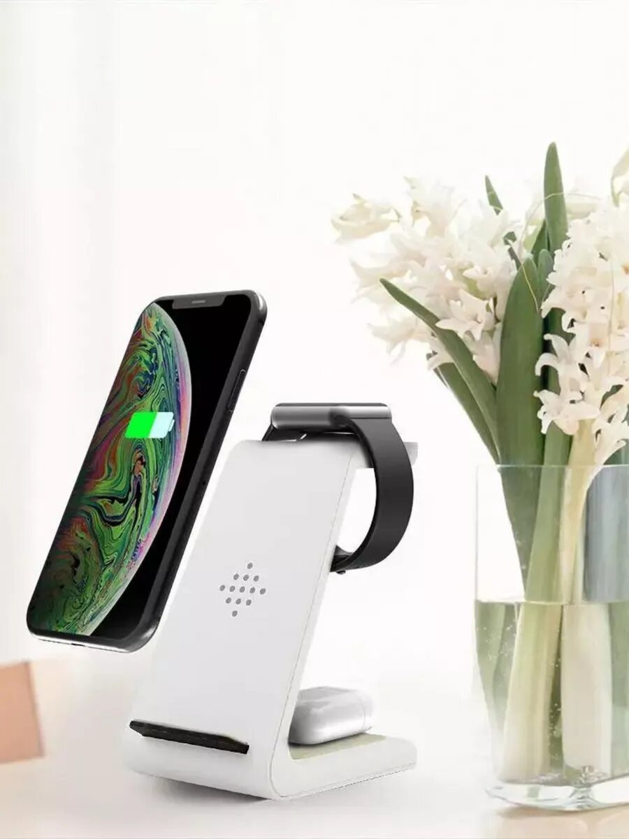 Беспроводная зарядная станция Deppa 3 в 1: для IPhone, Apple Watch, Airpods (24015), белый