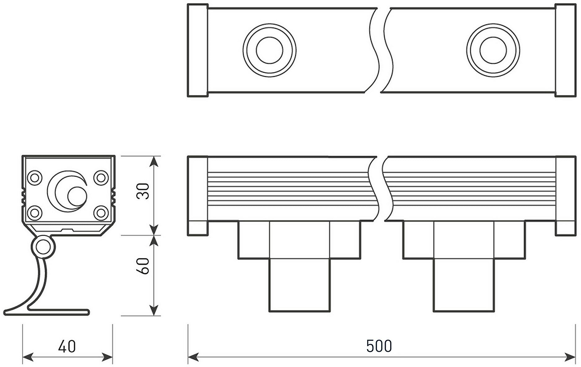 Линейный прожектор AR-LINE-500-9W Warm3000 (GR, 15x60 deg, 230V) (Arlight, Закрытый)