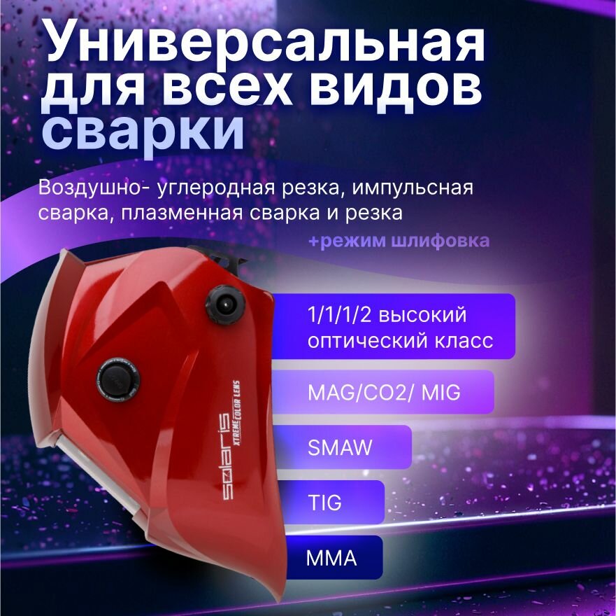 Купить Маска сварочная хамелеон Solaris ASF650Х (красный металлик) (1/1/1/2; 100x45 мм; DIN 3/9-13 (регул)