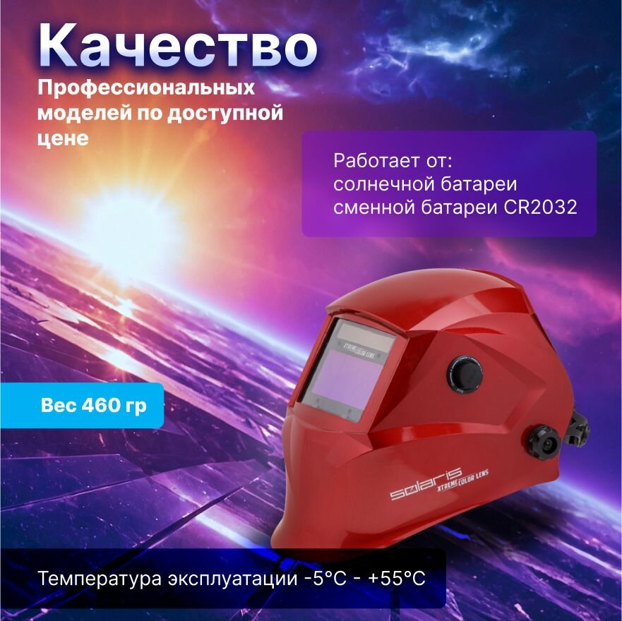 СохранитьМаска сварочная хамелеон Solaris ASF650Х (красный металлик) (1/1/1/2; 100x45 мм; DIN 3/9-13 (регул) интересное: