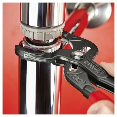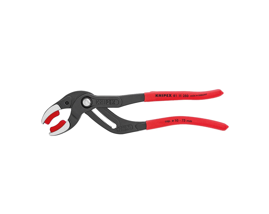 KNIPEX Клещи переставные трубные захватные, d 10-75 мм, для сифонов, масленых фильтров, пластиковых труб, L-250 мм, пластиковые насадки на губках, чёрные