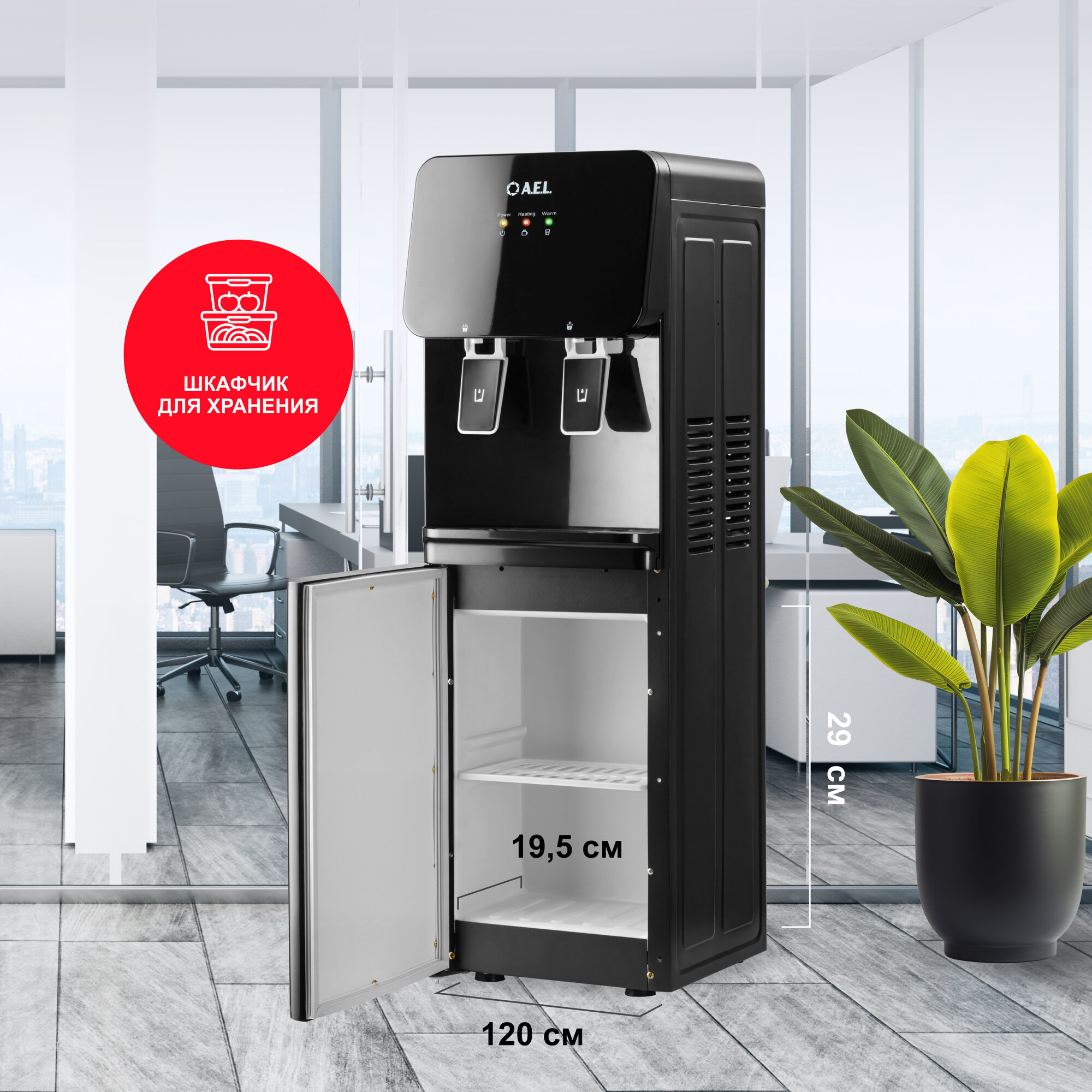 Кулер для воды AEL 85c LK black с нагревом, без охлаждения, со шкафчиком для посуды без охлаждения