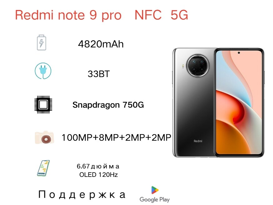 Redmi Note 9 pro 5G 8/256 ГБ, Dual nano SIM,Цвет Blu-ray