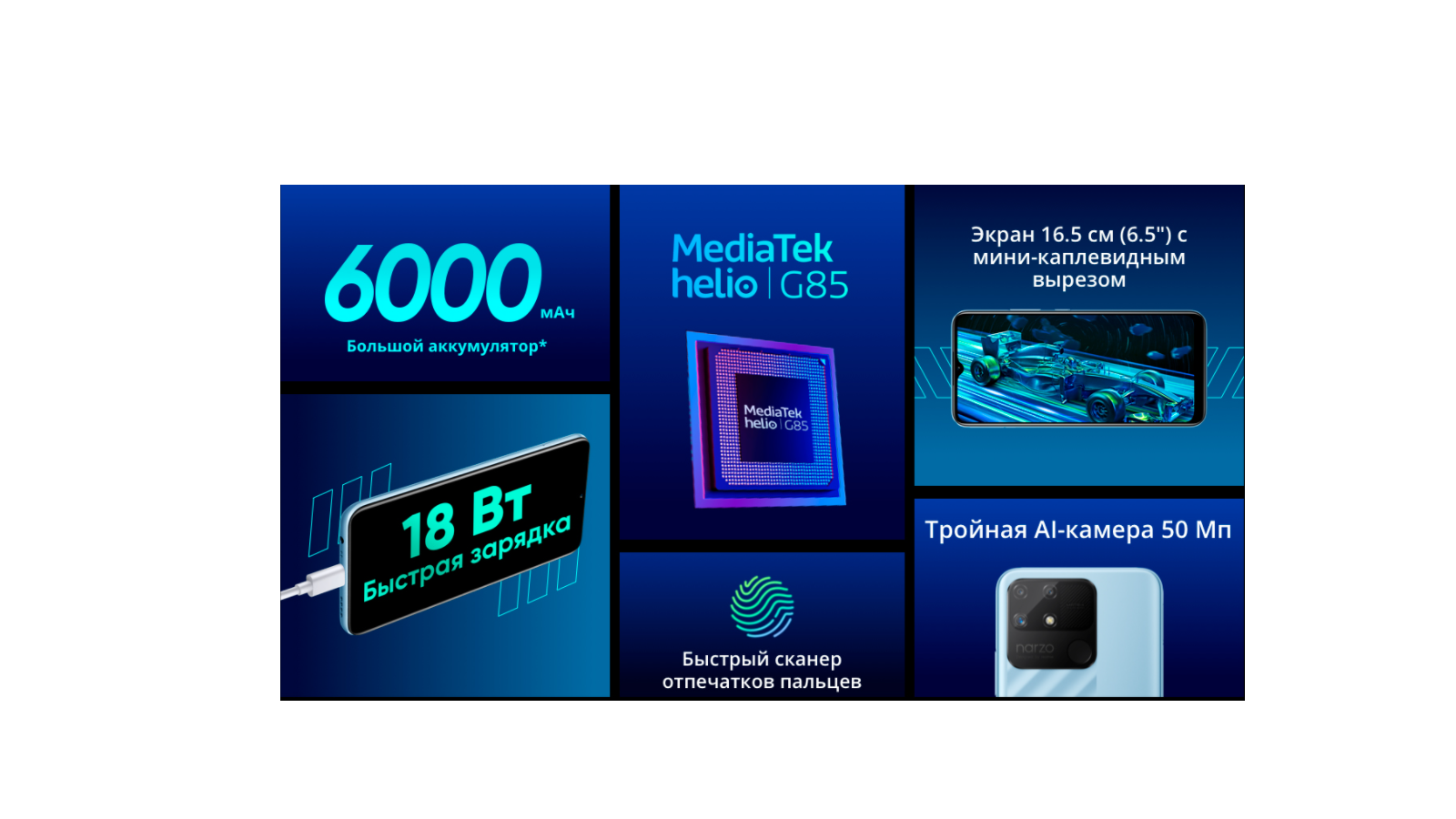 Смартфон Realme Narzo 50A 4/128 ГБ RU Oxygen Blue
