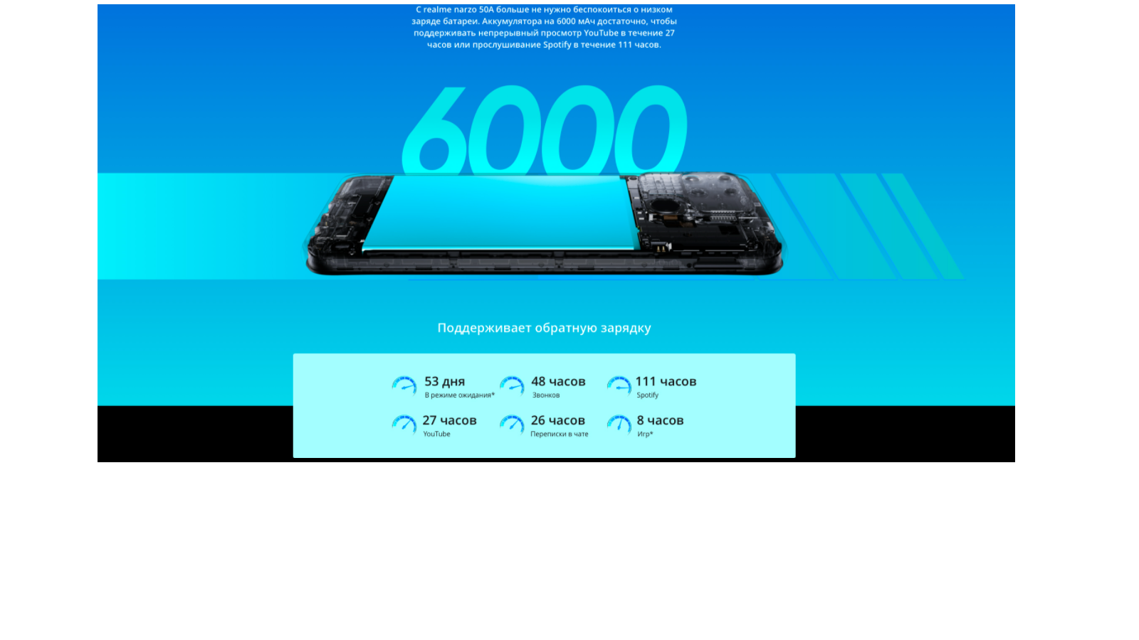 Мобильный телефон Realme Narzo 50A 4/128 ГБ RU, синий