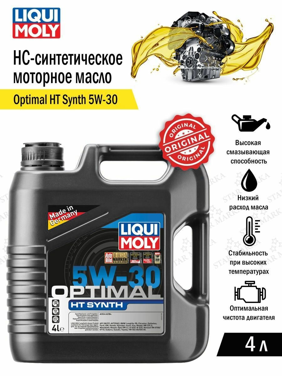 Ниже Вы можете прочитать отзывы на HC-синтетическое моторное масло LIQUI MOLY Optimal HT Synth 5W-30, 4 л, ознакомится с подробными характеристиками, посмотреть интересные обзоры и фотографии на HC-синтетическое моторное масло LIQUI MOLY Optimal HT Synth 5W-30, 4 л.
