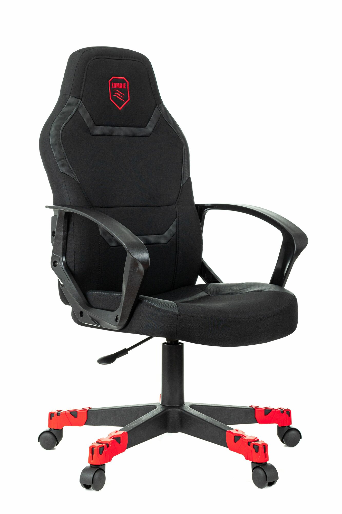 Кресло игровое ZOMBIE 10, на колесиках, текстиль/эко.кожа, черный/красный/красный [zombie 10 red]