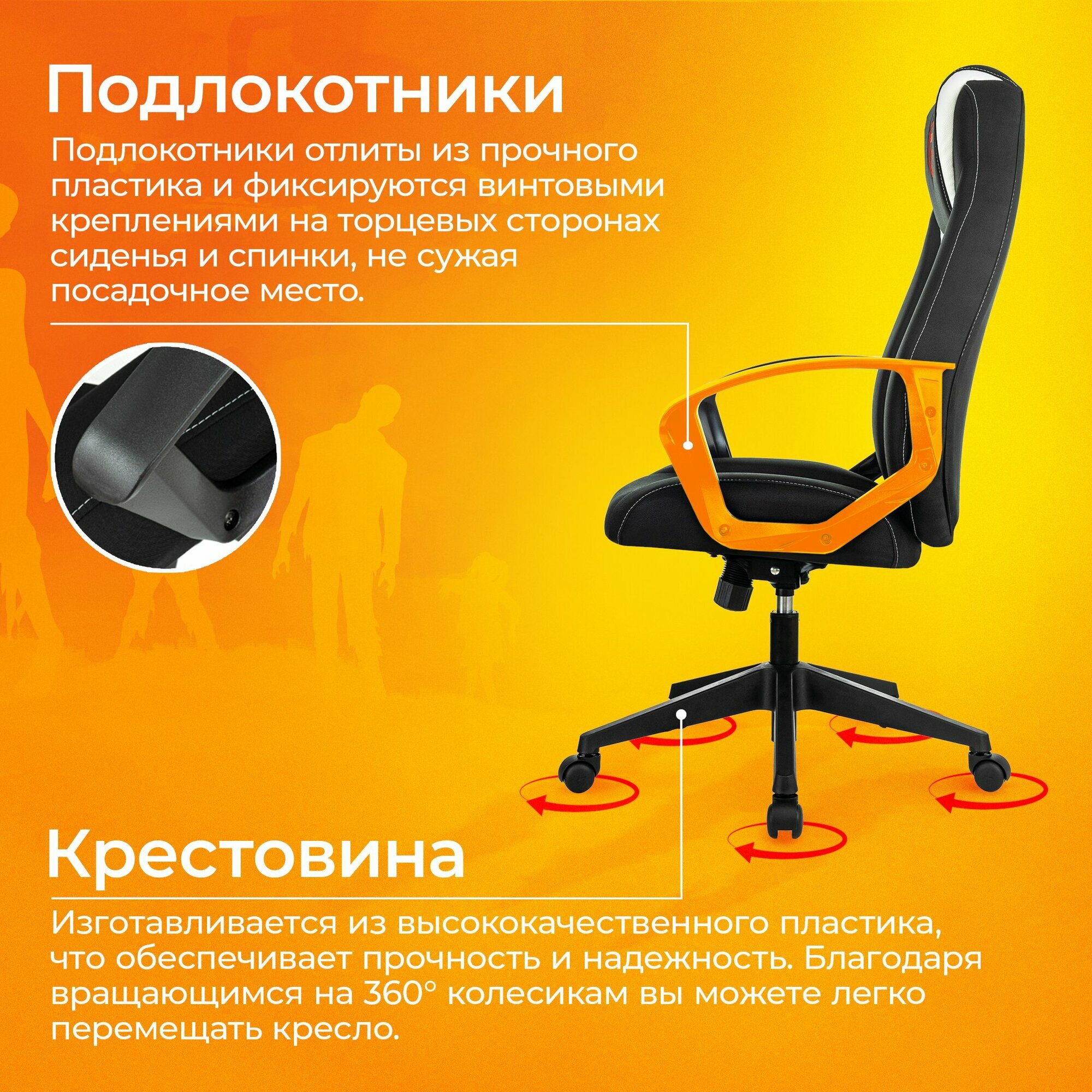 Кресло игровое ZOMBIE 8, на колесиках, эко.кожа, черныйоранжевый [zombie 8 orange]